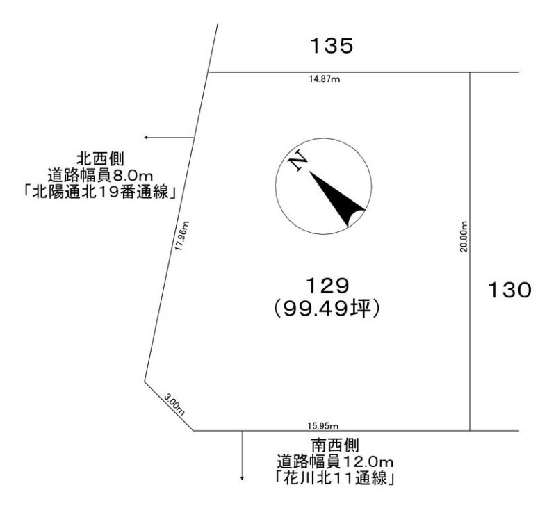 角地 南西 間口15.9m 公道 幅12m 北西 間口17.9m 公道 幅8m |