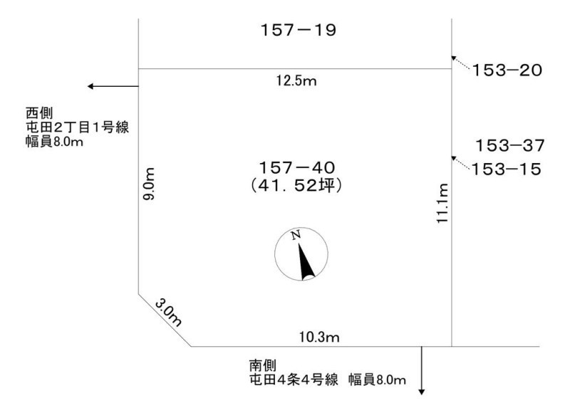 角地 南 間口10.3m 公道 幅8m 西 間口9m 公道 幅8m |