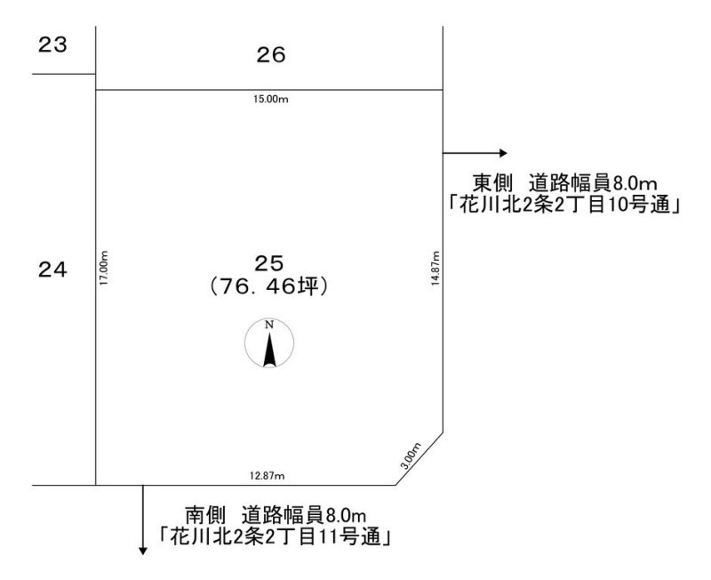 札幌市南北線 麻生駅 「花川北2条2丁目」 25分 徒歩2分 JR函館本線 手稲駅 「花川北2条2丁目」 26分 徒歩2分 |