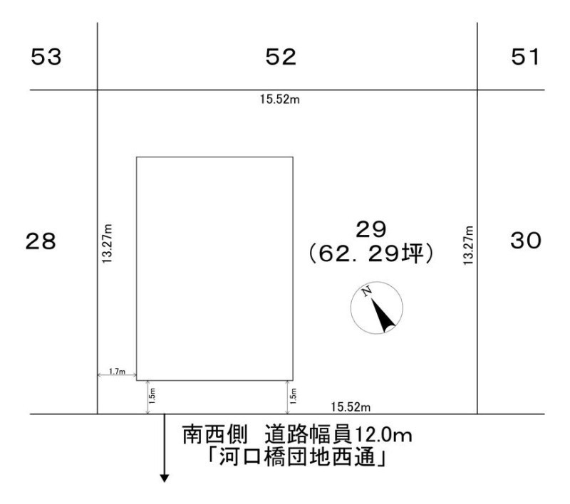 | 接道状況 | 南西 間口15.5m 公道 幅12m | ||
