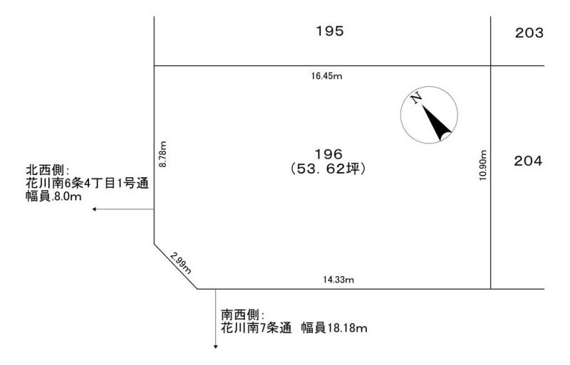 角地 南西 間口14.3m 公道 幅18.1m 北西 間口8.7m 公道 幅8m |
